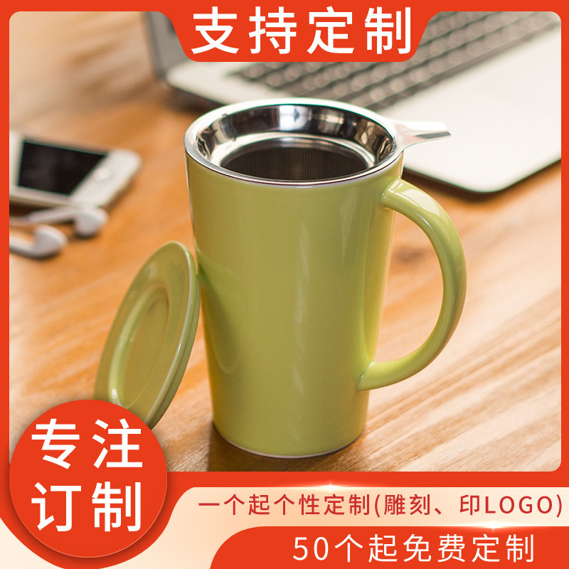 陶瓷水杯子 创意咖啡杯 马克杯 办公杯茶杯 带盖子茶隔可定制LOGO