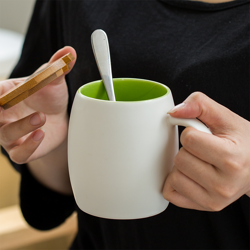 千度尚品 陶瓷杯子 酒桶杯咖啡杯 马克杯创意水杯带盖带勺 定制