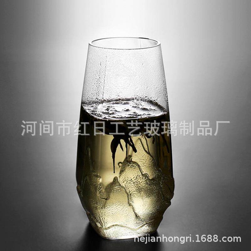 日式手工创意锤纹观山杯 带把耐热透明玻璃咖啡杯 马克杯家用茶杯