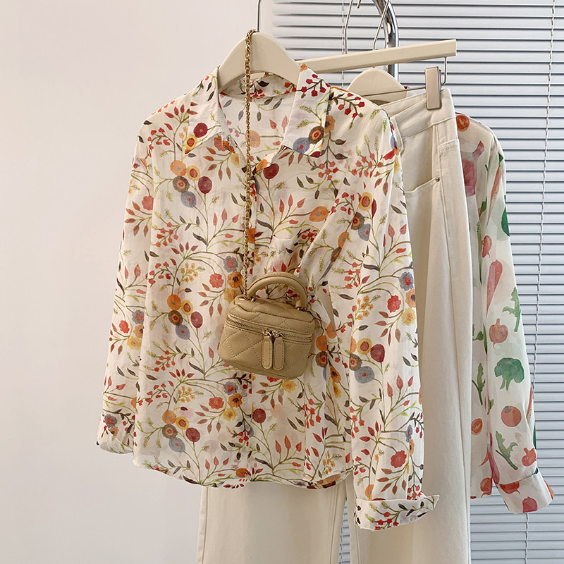 2024年夏季新款印花棉麻女装波点圆领仙气文艺复古长袖薄款衬衫女