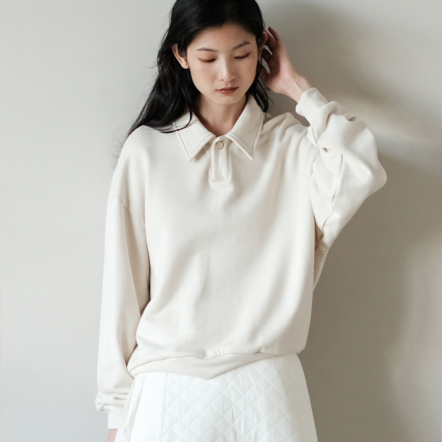 Herz乳白Polo复古宽松卫衣 进口重磅纯棉针织 赫织翰原创设计