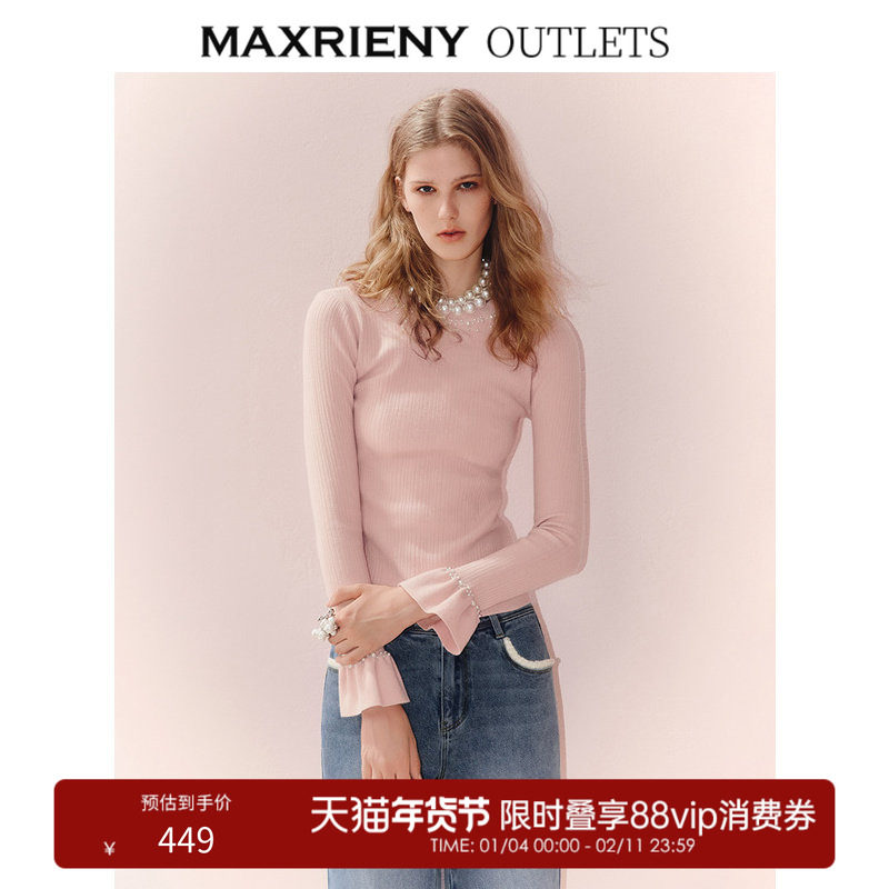 【奥莱】MAXRIENY套头毛针织衫喇叭袖修身收腰内搭上衣打底衫