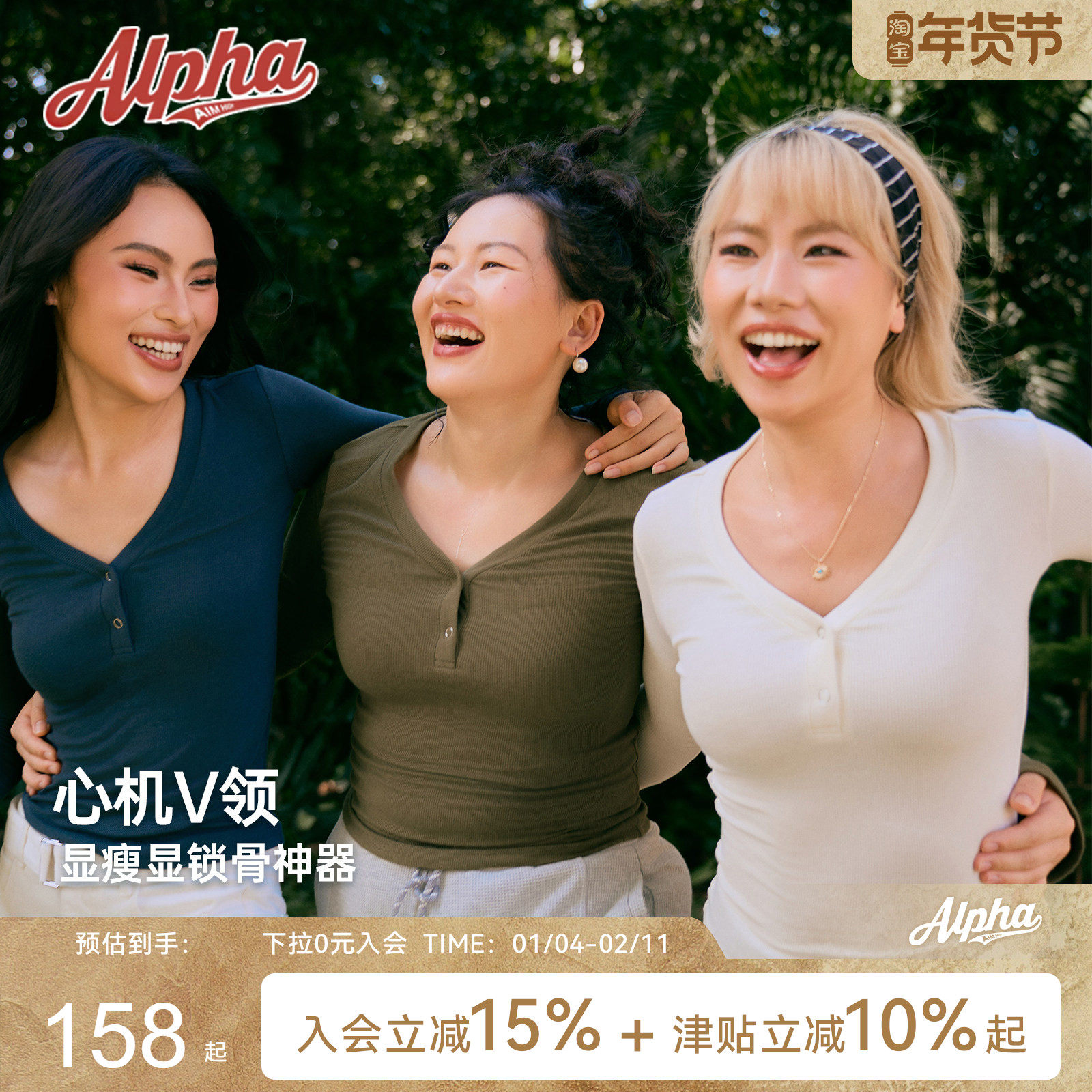 AlphaGym含绵羊毛V领亨利衫女秋冬弹力显瘦喇叭袖针织长袖打底衫