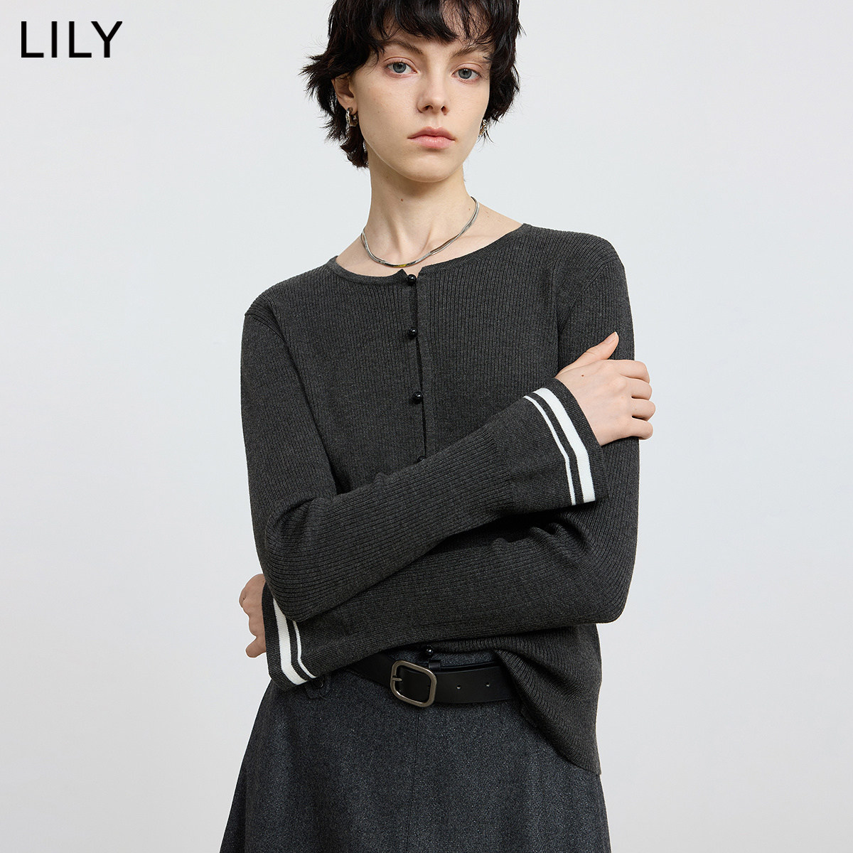 - 黑色开衫毛衣女