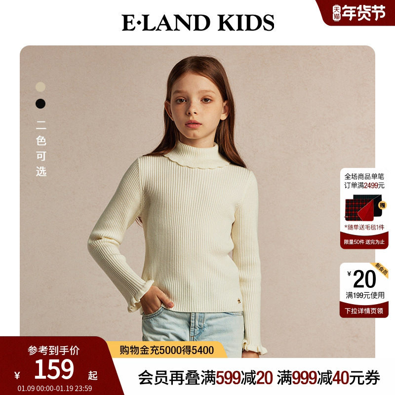 【28%绵羊毛】eland kids衣恋童装女童针织衫秋冬时尚喇叭袖毛衣
