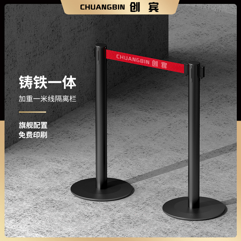 创宾一米线伸缩隔离带商场排队栏杆座银行5米铸铁底护栏定制logo