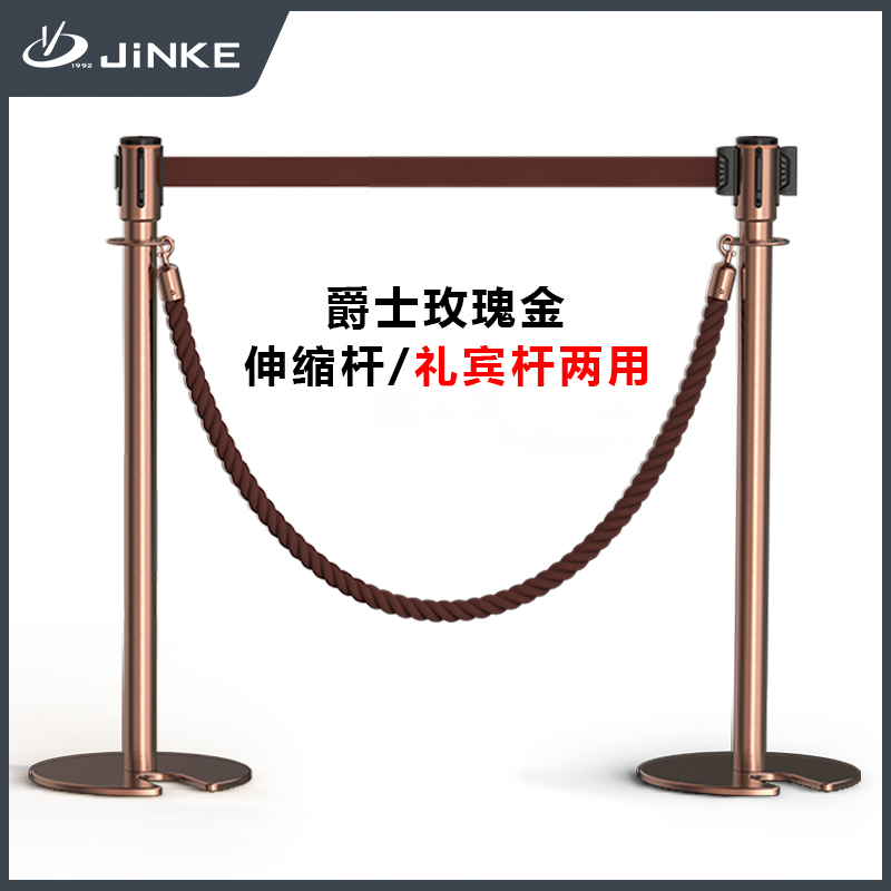 君铎 CBD多功能玫瑰金礼宾杆迎宾柱一米线伸缩隔离带栏杆排队护栏
