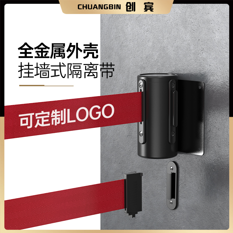 创宾不锈钢壁挂式一米线伸缩头电梯货架安全警戒带收银伸缩隔离带