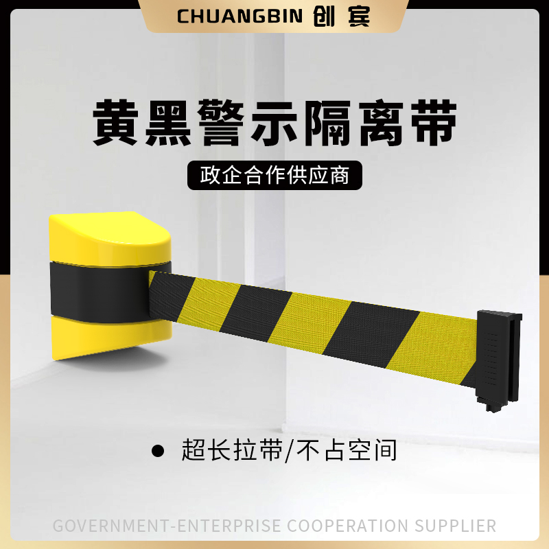 壁挂式磁吸式伸缩隔离带挂扣强磁吸铁黑黄带警戒带2米3米5米10米