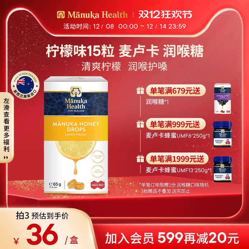 新西兰ManukaHealth蜜纽康MGO 400 麦卢卡蜂蜜润喉糖65g清新利嗓