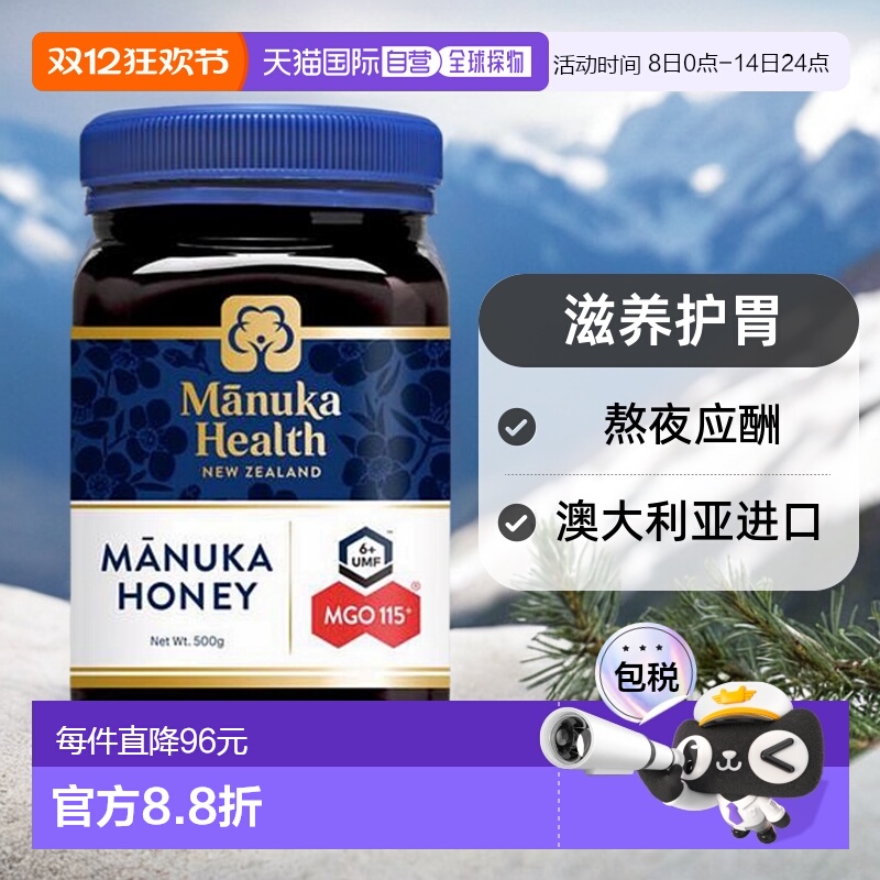 澳大利亚直邮Manuka Health蜜纽康115+蜂蜜熬夜应酬500g UMF6+