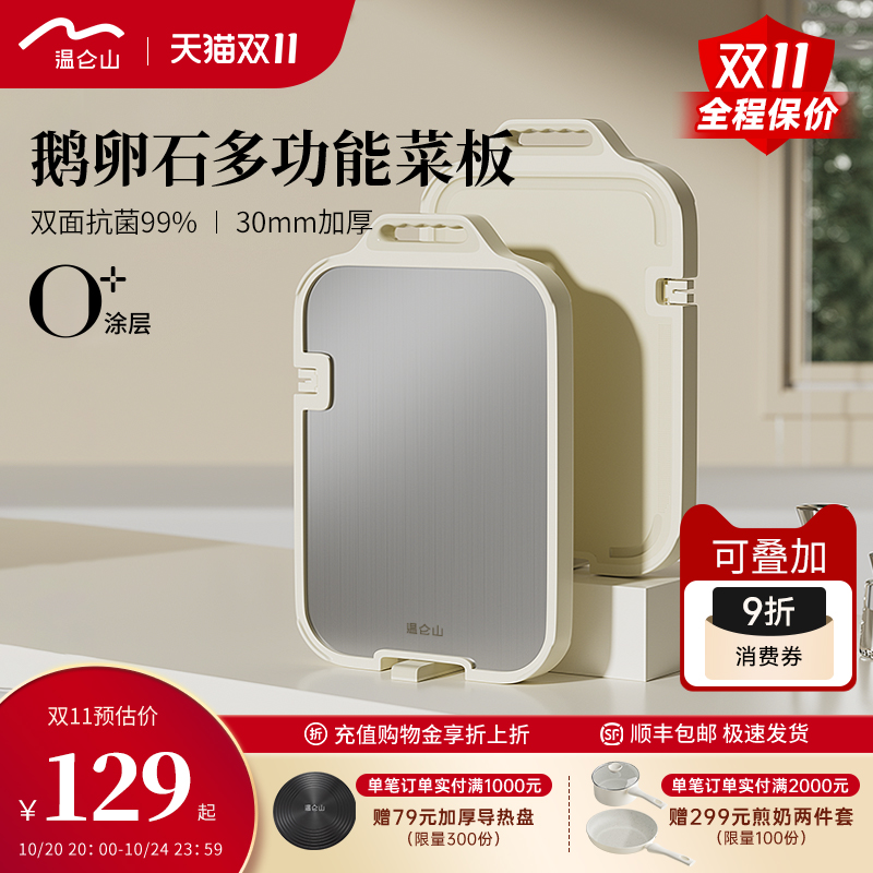 velosan温仑山菜板抗菌防霉家用不锈钢双面砧板案板厨房切菜粘板