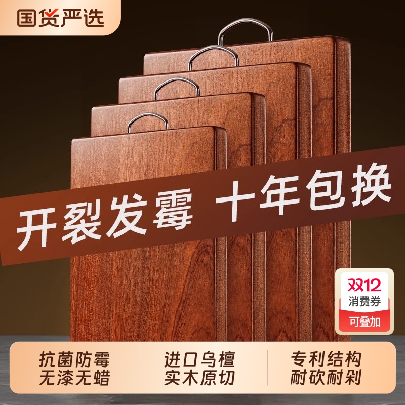 乌檀木菜板抗菌防霉家用食品级实木砧板厨房专用双面切菜案板粘板