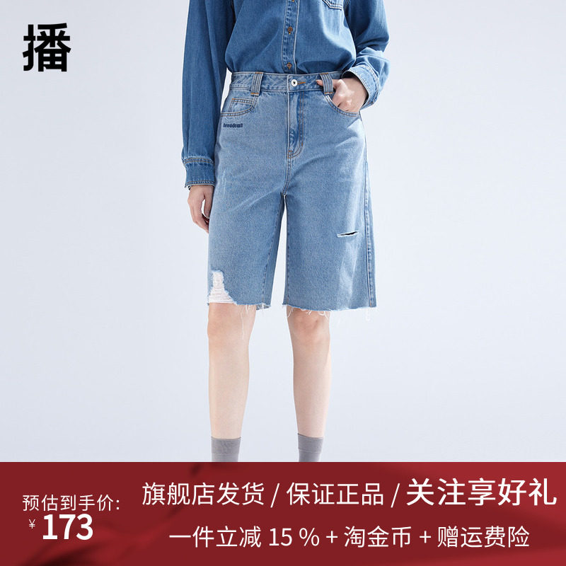 播破洞牛仔五分裤女2024春季新款韩版宽松小个子短裤DDR2KD51181
