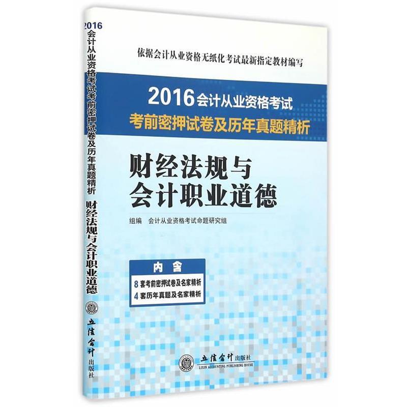 出版社:立信会计出版社2016会计从业资格考试考前密押试卷及历年真题精析 财经法规与会计职业道德(正版旧书包邮)立信会计出版社