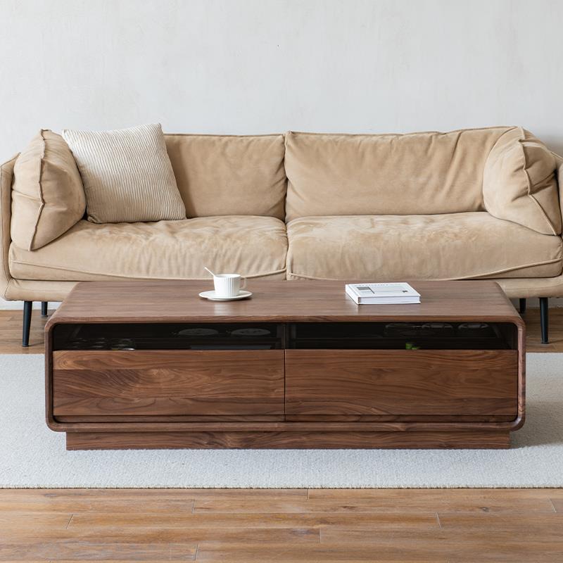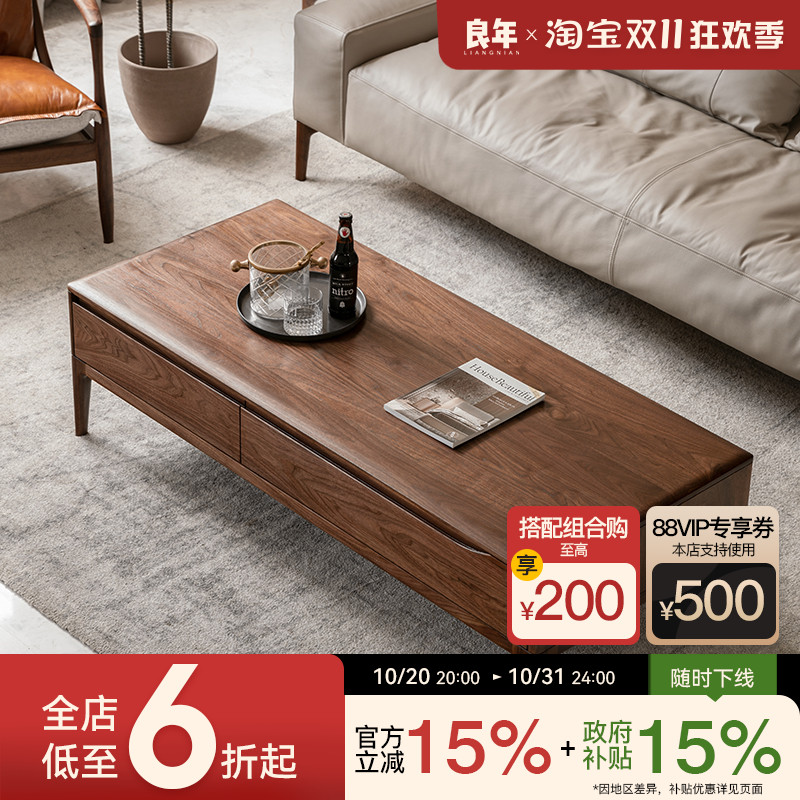 yamoo北美黑胡桃木茶几北欧简约全实木茶几桌家用客厅储物矮桌