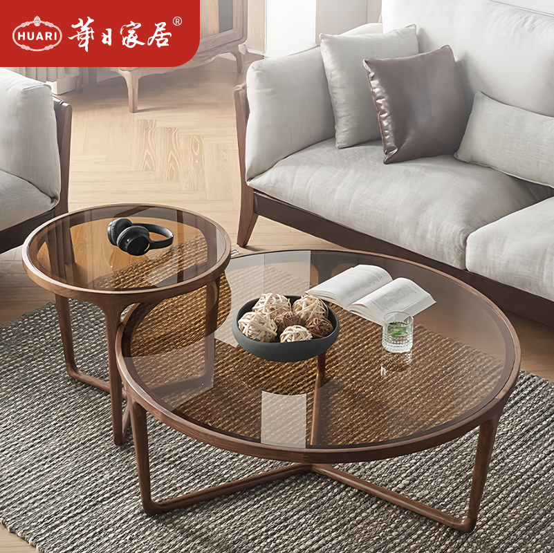 需定制胡桃木茶几圆型客厅家用小户型高级感现代简约复中古风2025