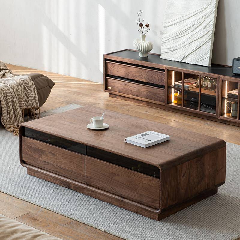 北美黑胡桃木茶几电视柜组合小户型玻璃全实木茶桌咖啡桌客厅矮桌