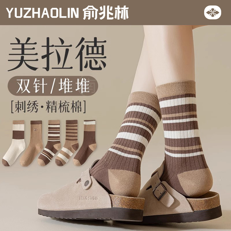 袜子女士春秋季中筒袜美拉德色系棉袜秋冬款长袜搭配勃肯鞋堆堆袜