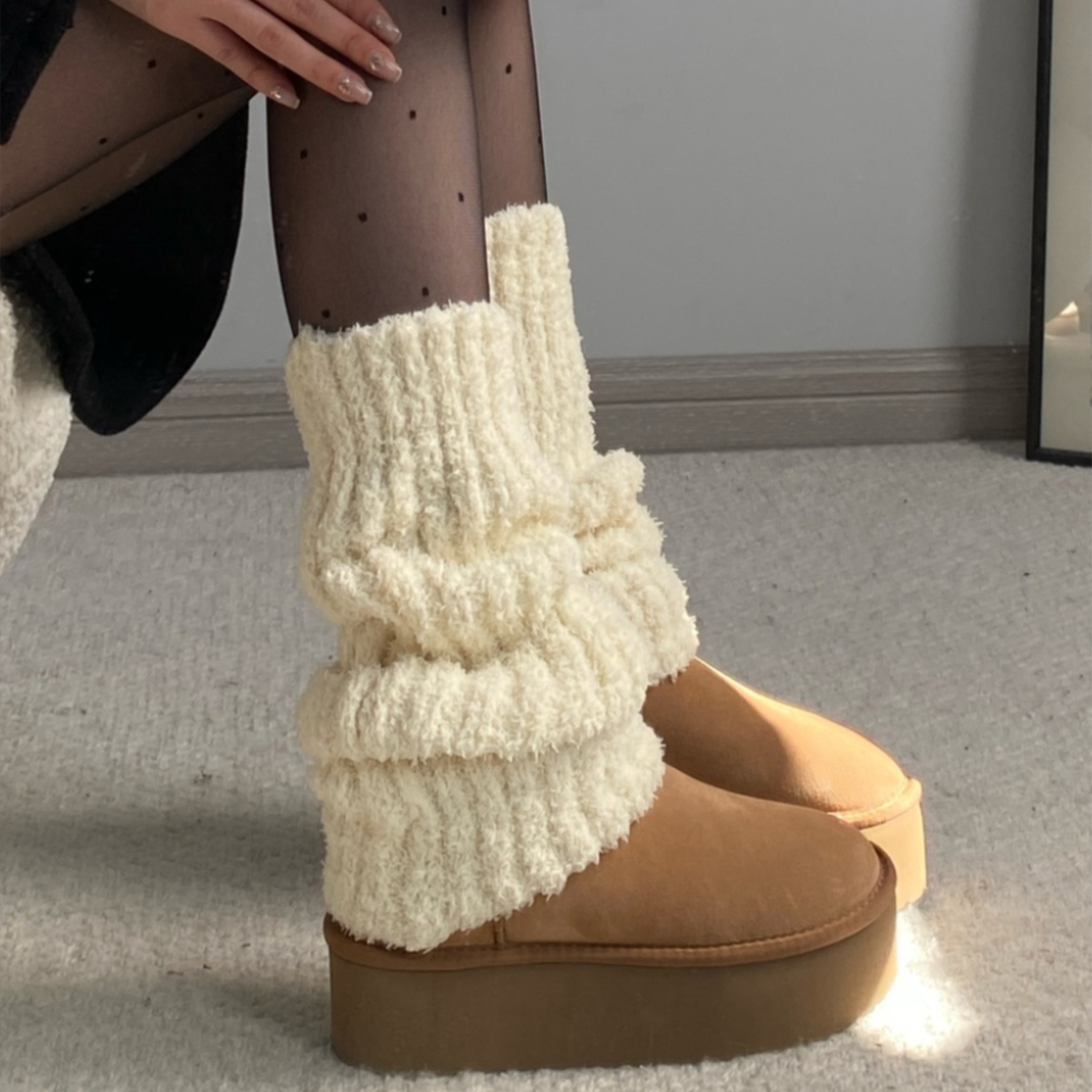 Rougo羊毛针织袜套堆堆袜冬季女加厚腿套保暖配鲨鱼裤配雪地靴