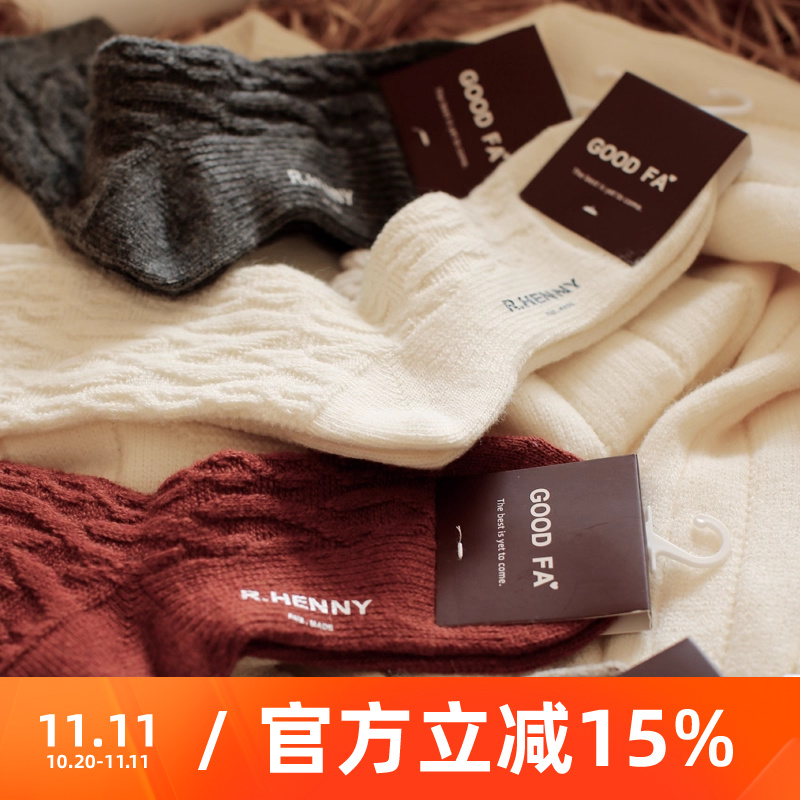 软糯羊毛袜子女秋冬款中筒袜羊绒加厚保暖长袜日系甜美堆堆袜冬天