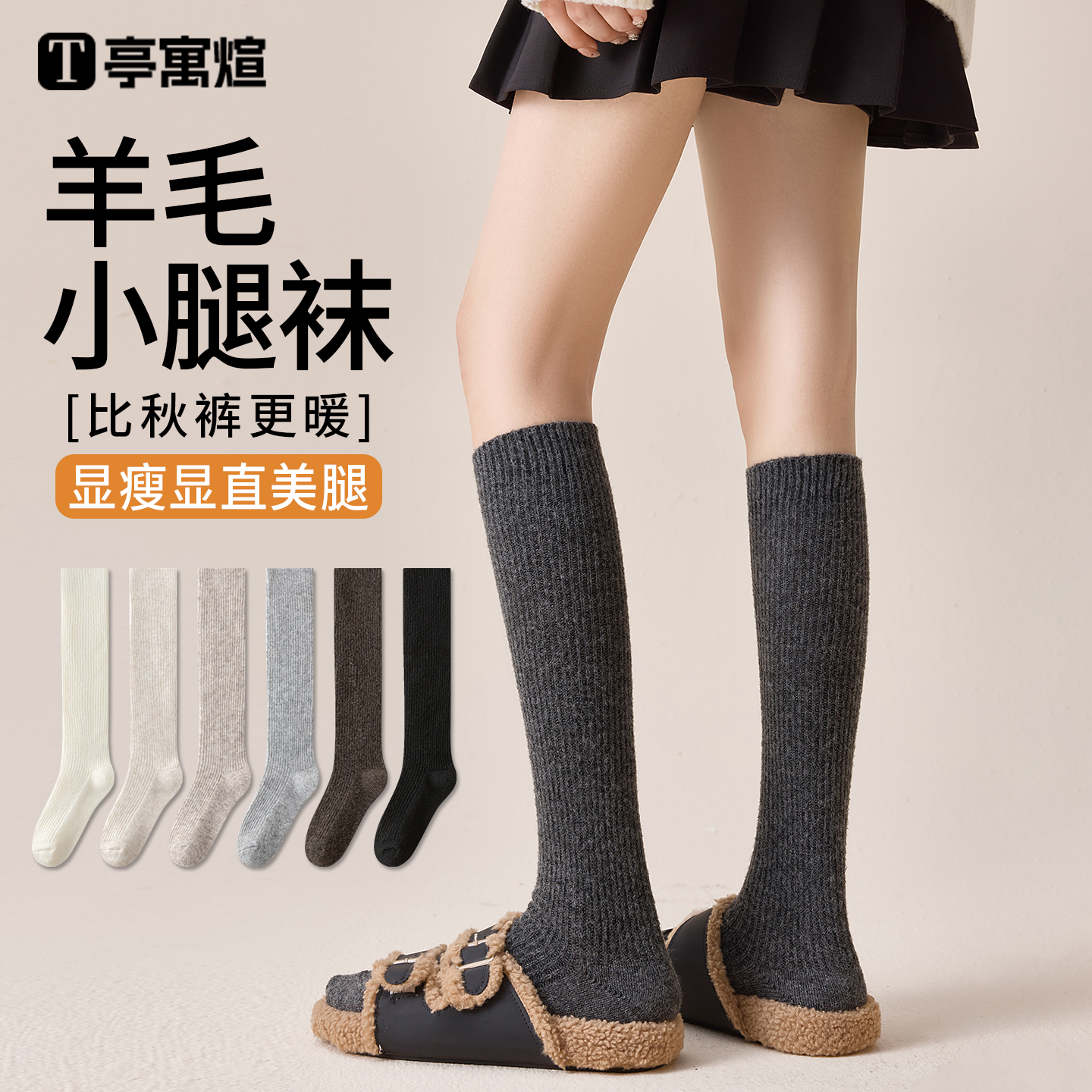 羊毛小腿袜女长筒袜秋冬保暖女袜堆堆袜冬天显瘦高筒防滑女士长袜