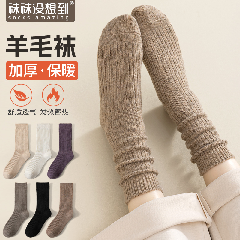 羊毛袜子女秋冬中筒袜加绒加厚长筒堆堆袜冬季保暖女式日系月子袜