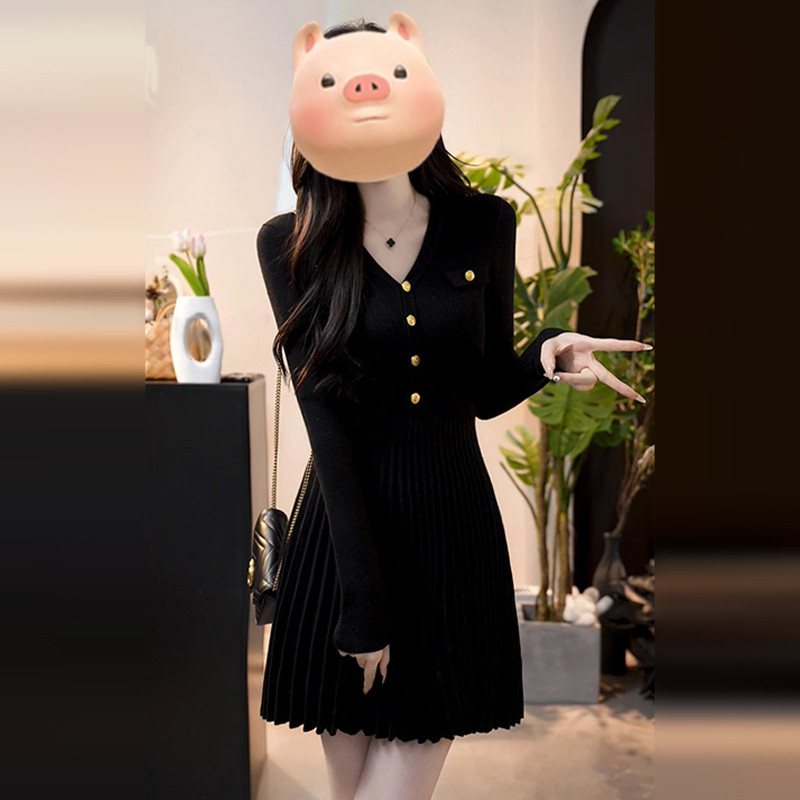 - 收腰针织连衣裙a字裙