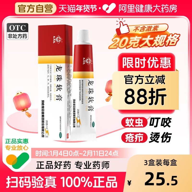 马应龙龙珠软膏15g解毒消肿烫伤药膏褥疮蚊虫叮咬长包皮肤止痒