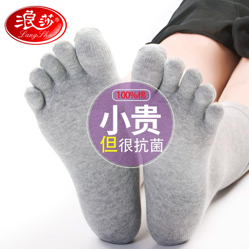 浪莎五指袜男纯棉中筒防臭男士全棉袜分趾袜春秋季五只分脚趾袜子