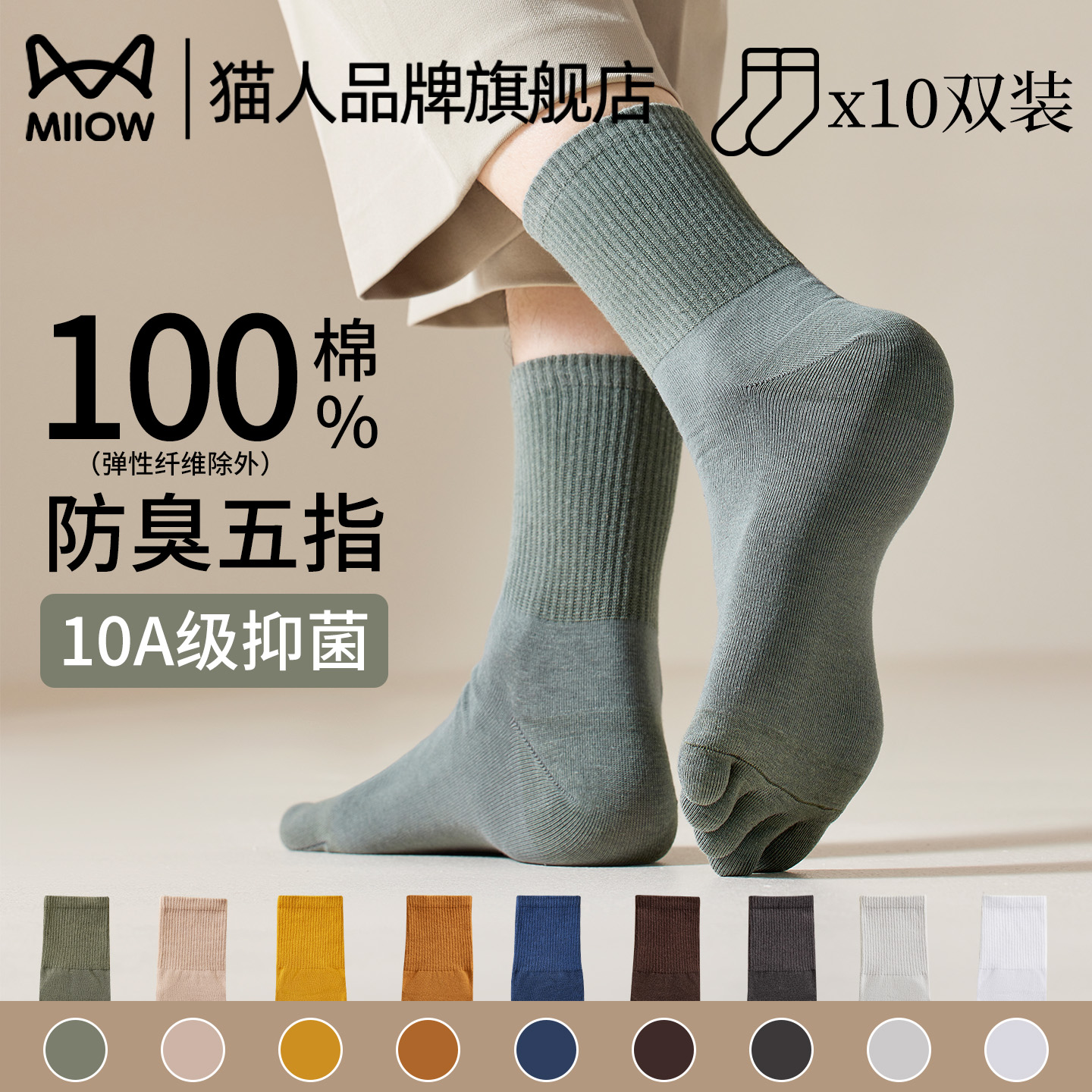 猫人五指袜男士分趾中筒袜秋季纯棉防臭10A抑菌吸汗透气2025新款