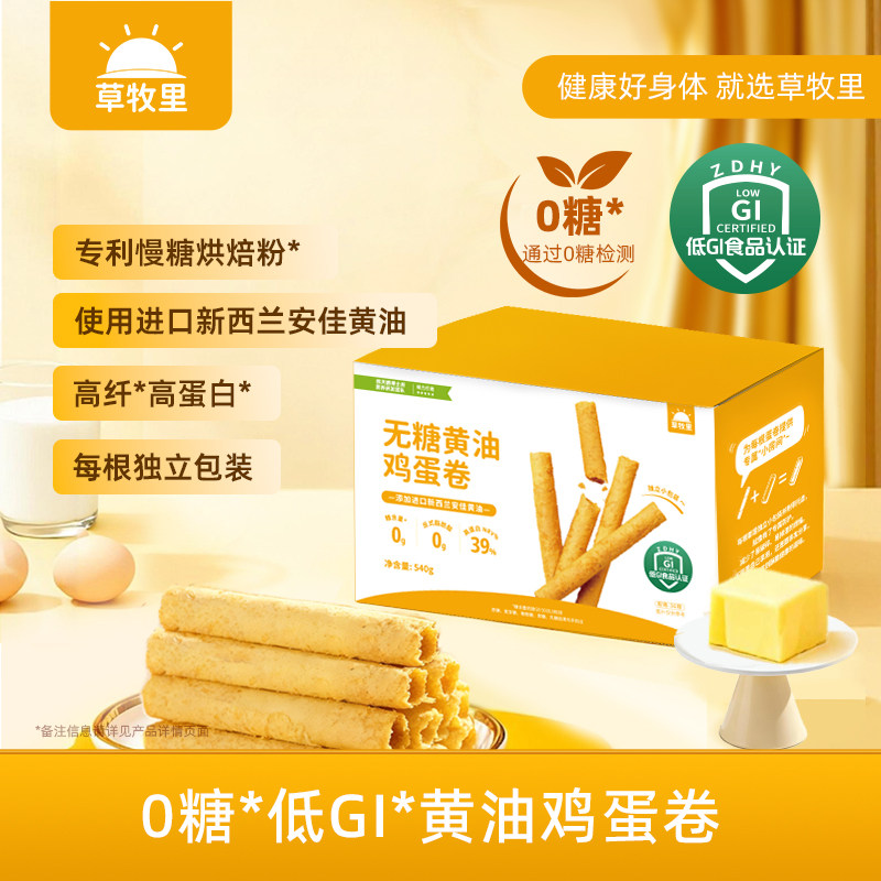 草牧里无糖低GI鸡蛋卷高纤高蛋白新西兰安佳黄油慢糖烘焙粉脆饼干