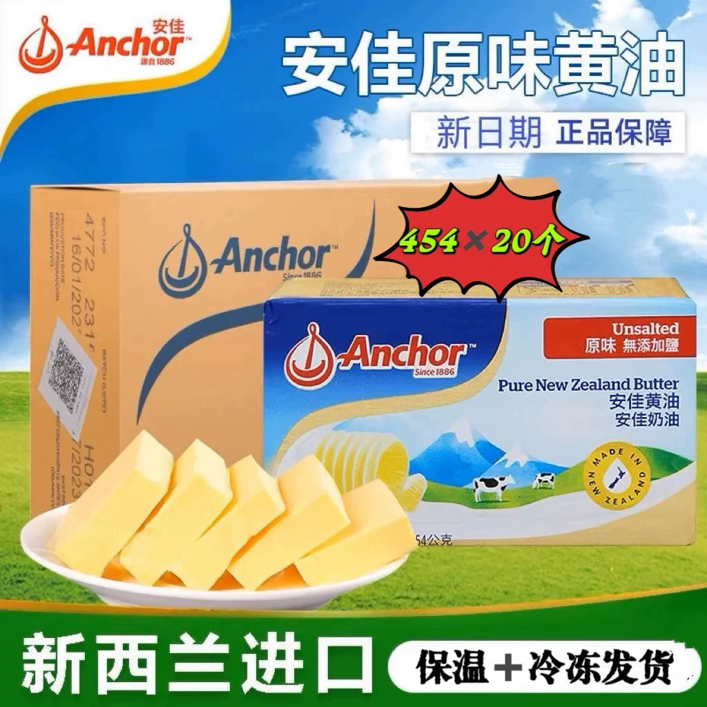 新西兰安佳黄油454gx20块无盐动物性黄油烘焙原料面包牛排蛋糕用