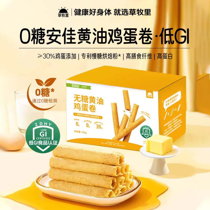 草牧里无糖鸡蛋卷0糖低GI高纤高蛋白新西兰安佳黄油老式酥脆饼干