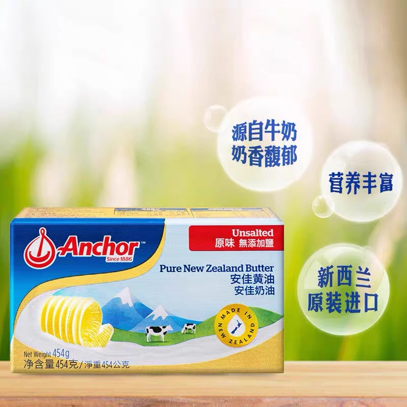 新西兰安佳黄油动物无盐淡味黄奶油454烘培食用家用商用曲奇面包