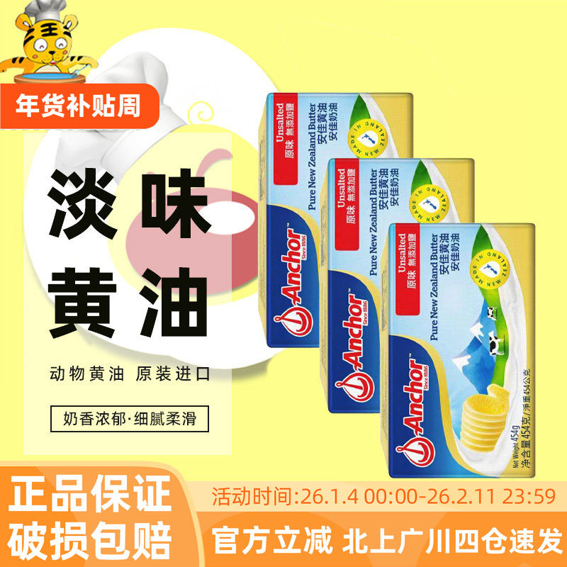 安佳淡味黄油454g*3块新西兰进口动物性牛油蛋糕饼干面包烘焙原料