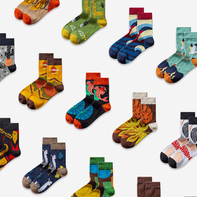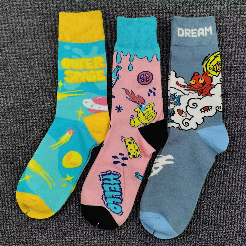 个性潮袜男女秋冬季纯棉创意卡通袜子英伦风中性花色情侣袜学院风