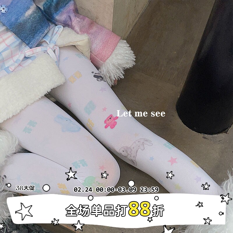 LET ME SEE 插画师合作款 萌萌哒个性潮袜可爱少女卡通印花打底袜