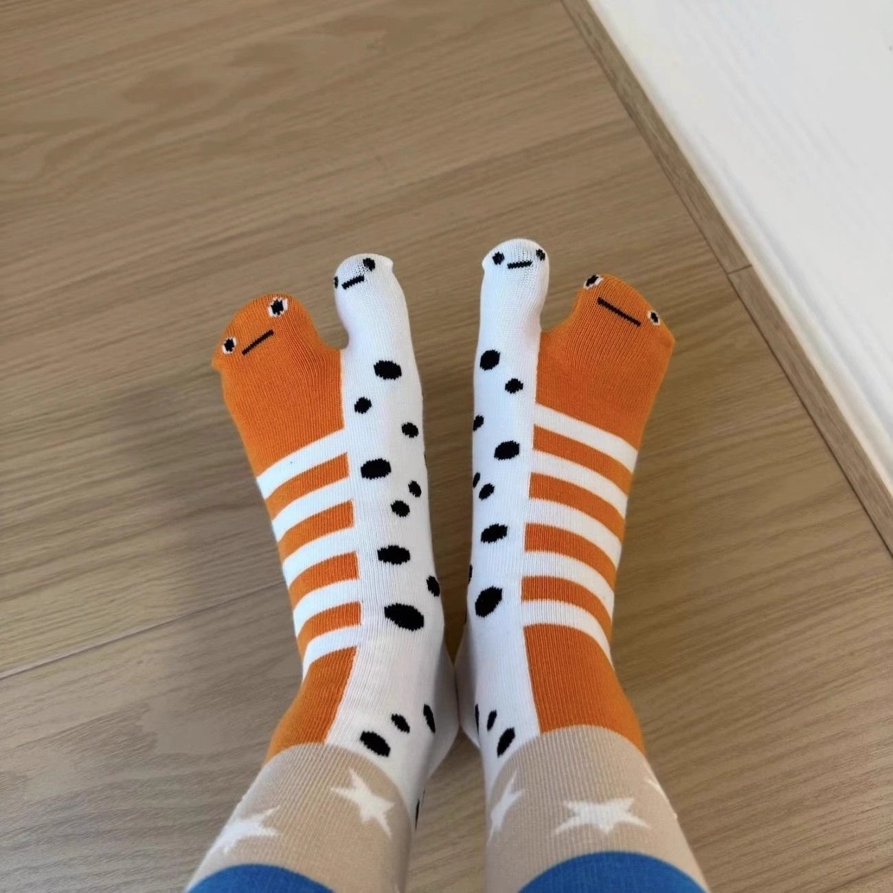 女款可爱搞怪分趾中筒袜抽象丑萌花鳗水族馆情侣袜子闺蜜个性潮袜