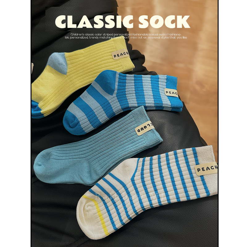 - 条纹 中筒 女袜