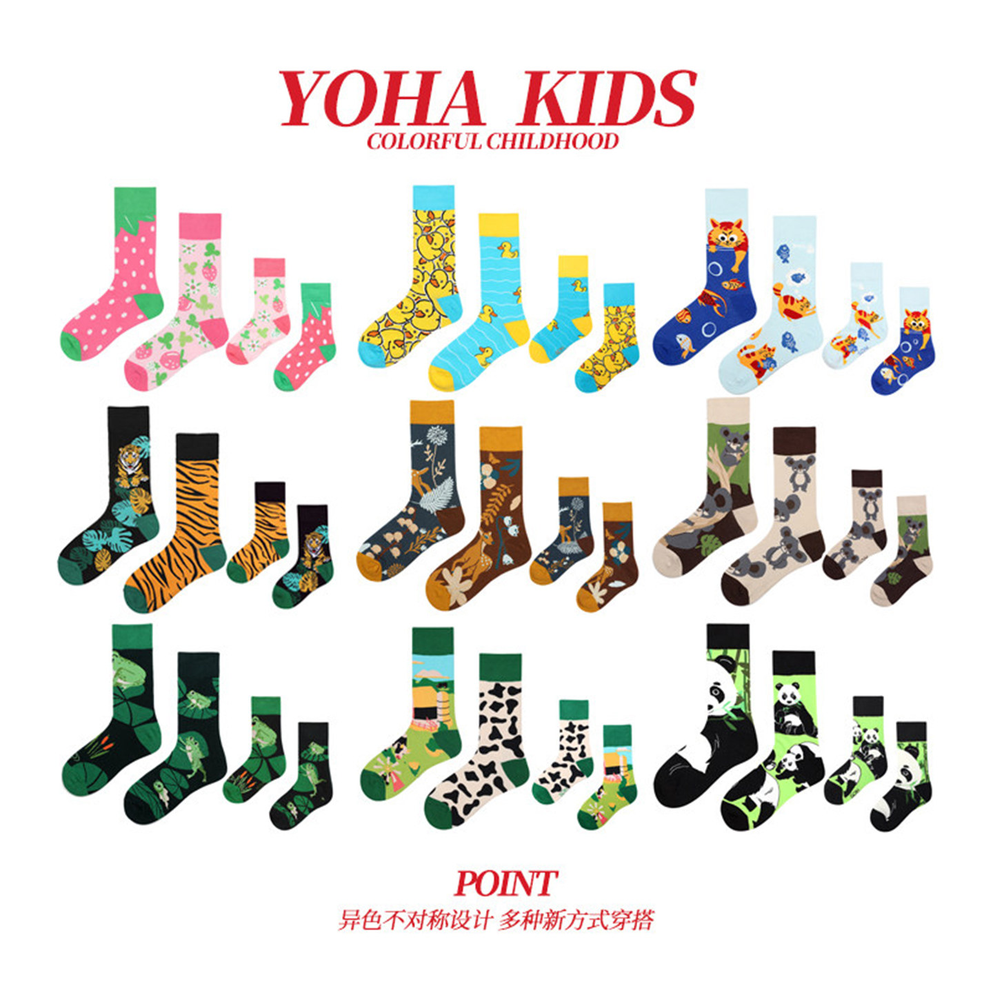 满3双享9折|儿童款男女款亲子袜彩色中筒袜ab袜子不对称个性潮袜