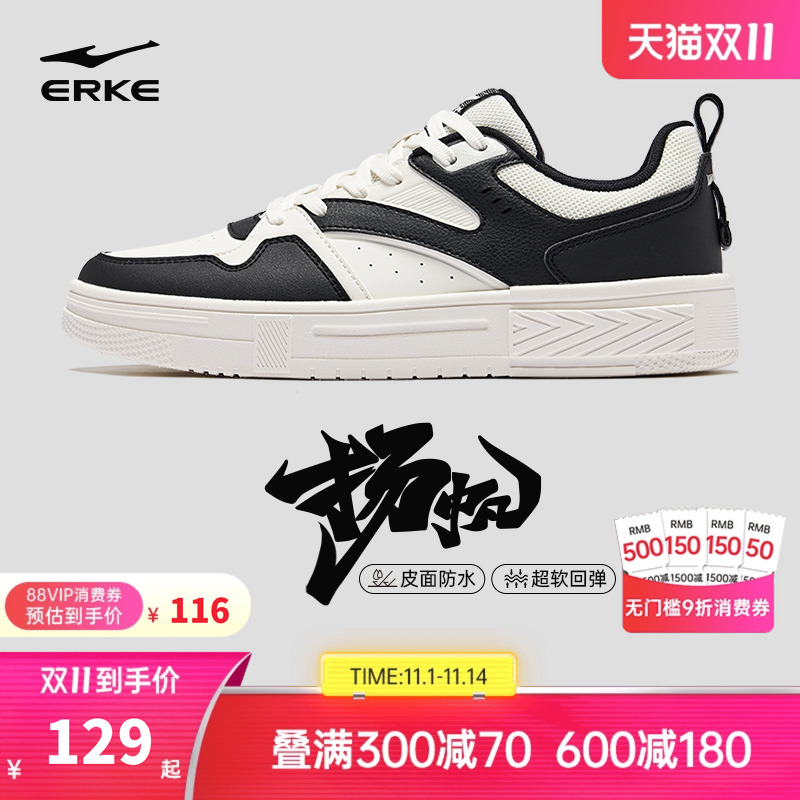 鸿星尔克板鞋男鞋冬季新款防水鞋子黑白厚底运动鞋皮面百搭休闲鞋