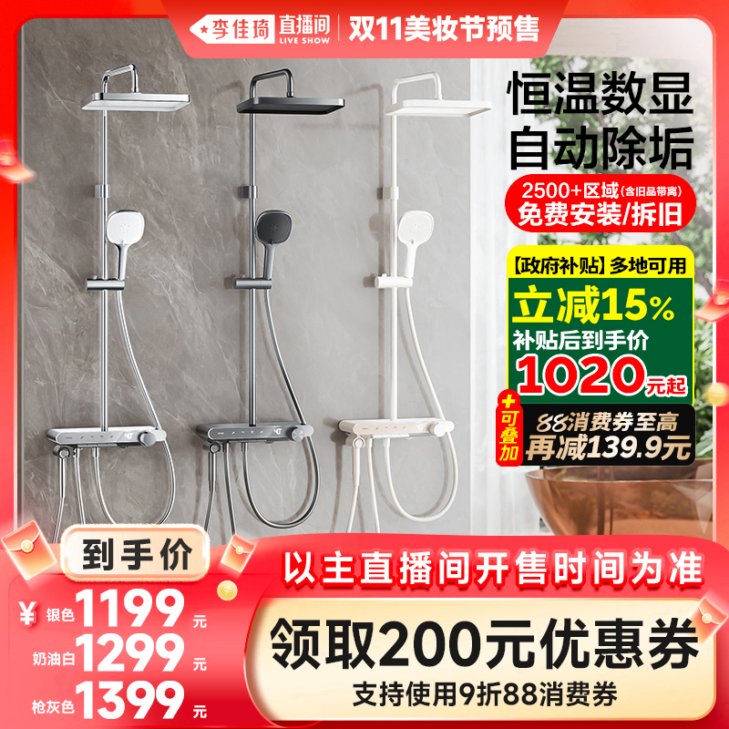 [直播间补贴]恒洁钢琴按键数显无顶喷分体式淋浴花洒套装卫生间