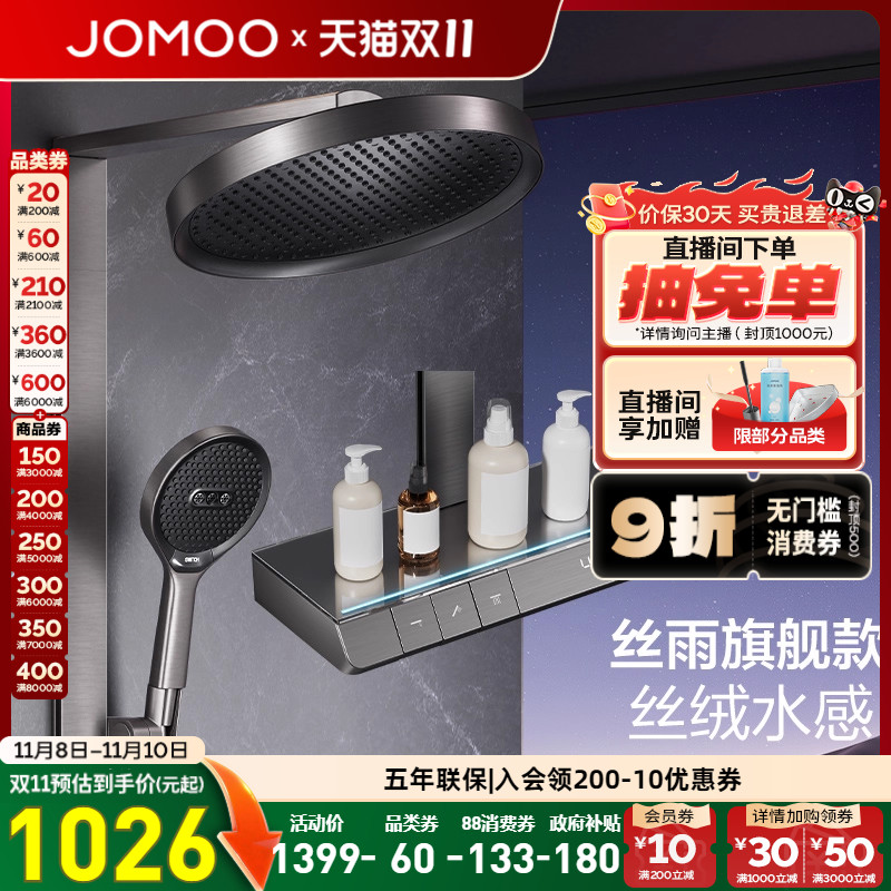 【百亿补贴】九牧星幕版琴键丝雨淋浴花洒套装淋浴器家用增压花洒
