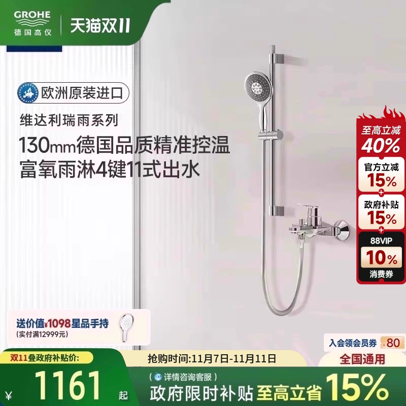 高仪原装进口瑞雨130冷热水淋浴花洒套装富氧雨淋4键11式按摩手持
