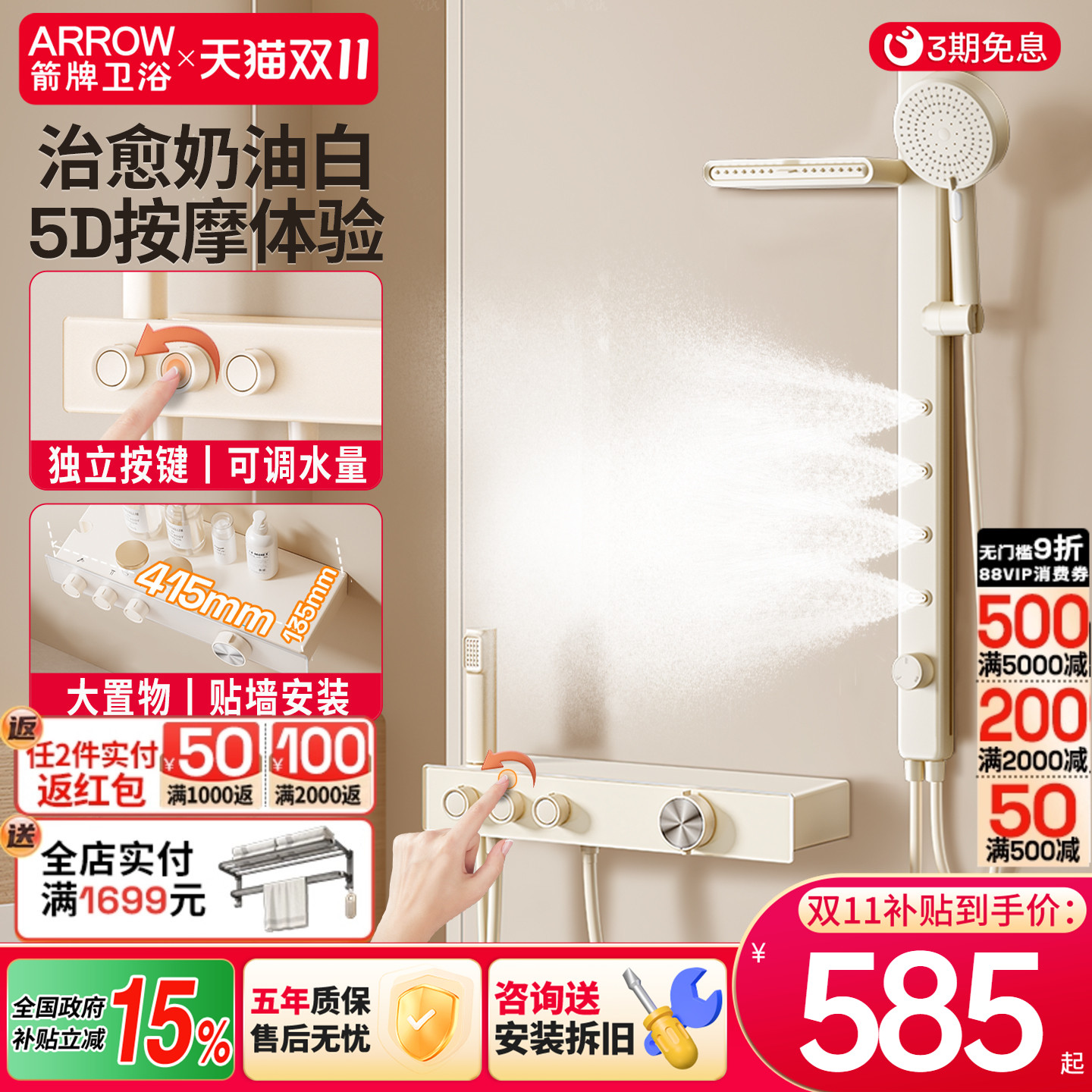 箭牌卫浴奶油白恒温淋浴花洒套装无顶喷小户型分体式简易龙头家用