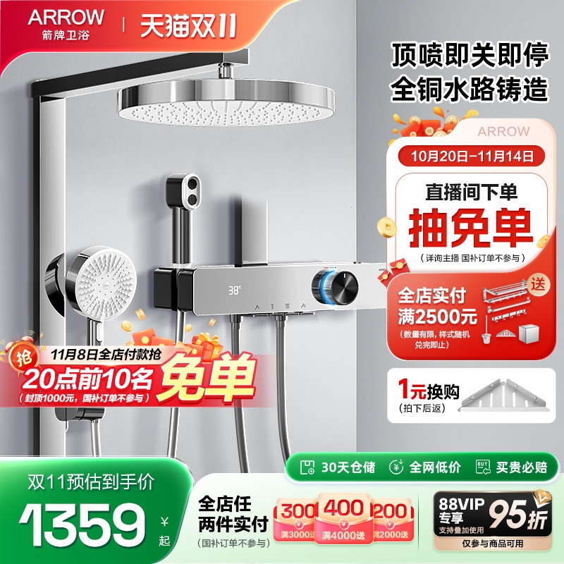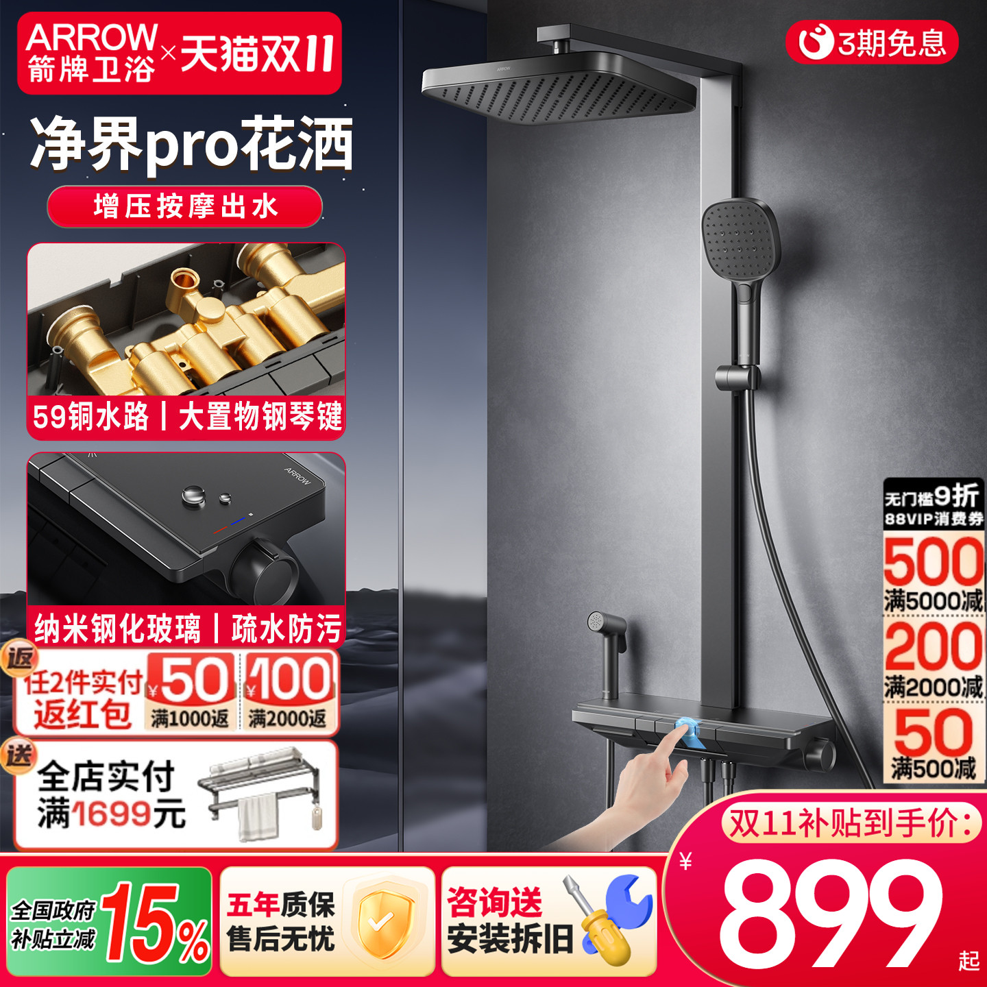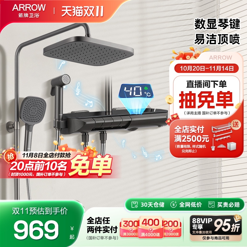 【百亿三重补贴】箭牌K530琴键智能数显增压淋浴花洒套装顶喷216