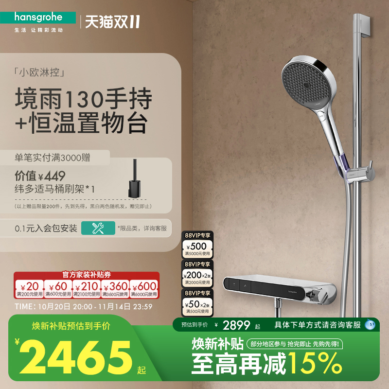 【新品】汉斯格雅境雨130手持小欧淋控恒温大置物台淋浴花洒套装