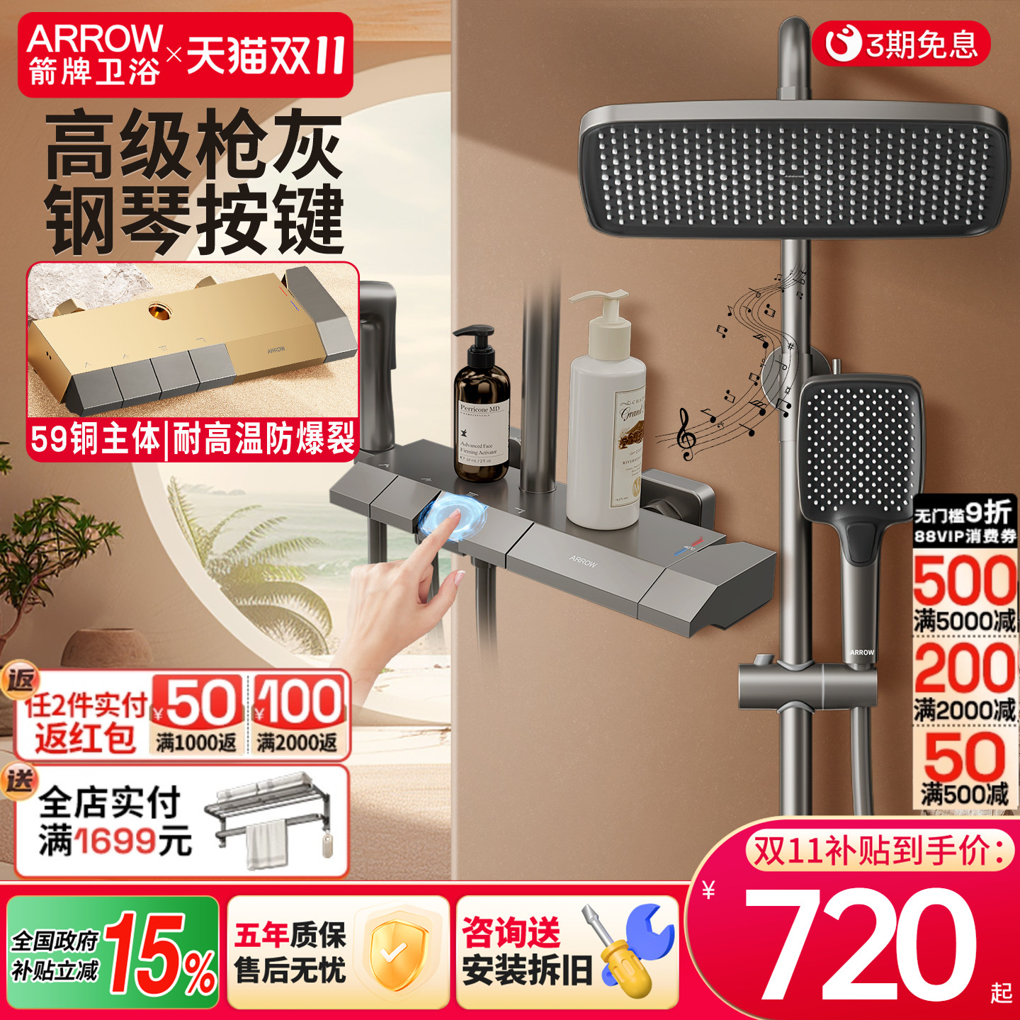 箭牌枪灰色钢琴键恒温淋浴花洒套装家用卫生间淋浴器增压喷头卫浴