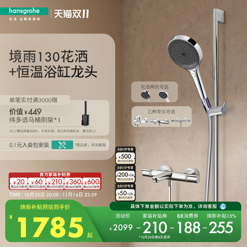 汉斯格雅hansgrohe境雨130手持恒温浴缸龙头淋浴花洒套装官方正品